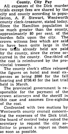 Before 10 o’clock William Bohozuk and Evelyn’s father were in their places. They celebrated their last two hours of freedom on bail in the courtroom. At 12 noon, handcuffed, they were taken back into custody. But they had a good time when they were out on bail. Bohozuk was at a supper-dance Saturday night and a request-number was played for him. Maclean had visited with a lot of his old cronies from the street railway.