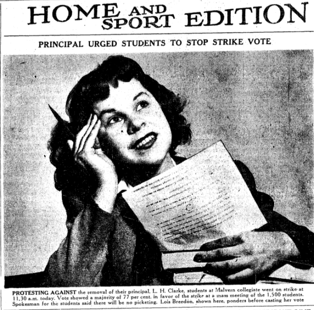 She didn’t have an accompanying photo, rather, that was taken up by something that seems timely; kids were going on strike, protesting the removal of their principal.